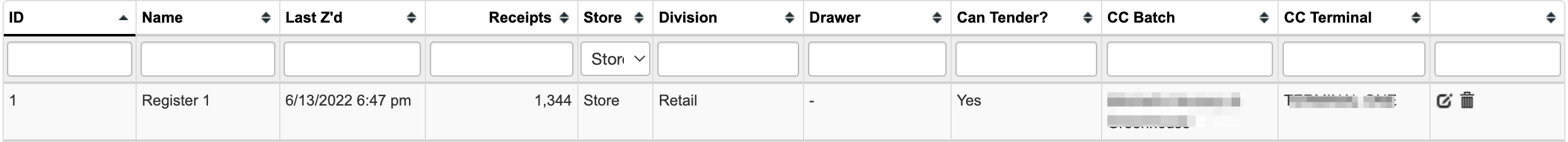 The store where the register is located. You can add stores below the registers section.