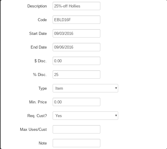 - Note- add a note for employees to see while applying the coupon to a sale.