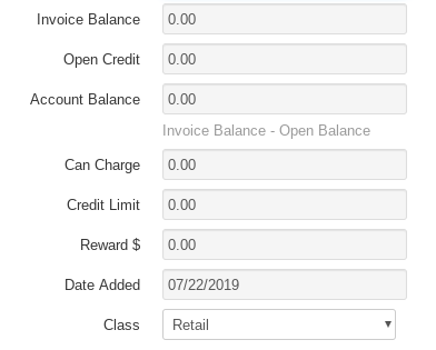 - Class- This drop down toggles between "Retail" and "Landscaper" to categorize the class of customer.