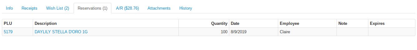 Reservations- The Reservation tab is similar to the Wish List tab, but shows items that are already in stock that are being held for the customer.