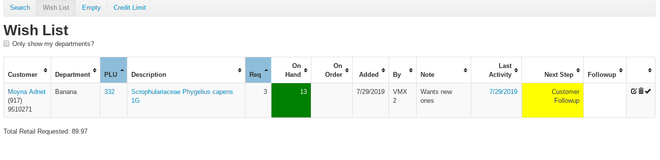 Check this box to filter through the Wish List entry to only show the entries that are assigned to your departments.