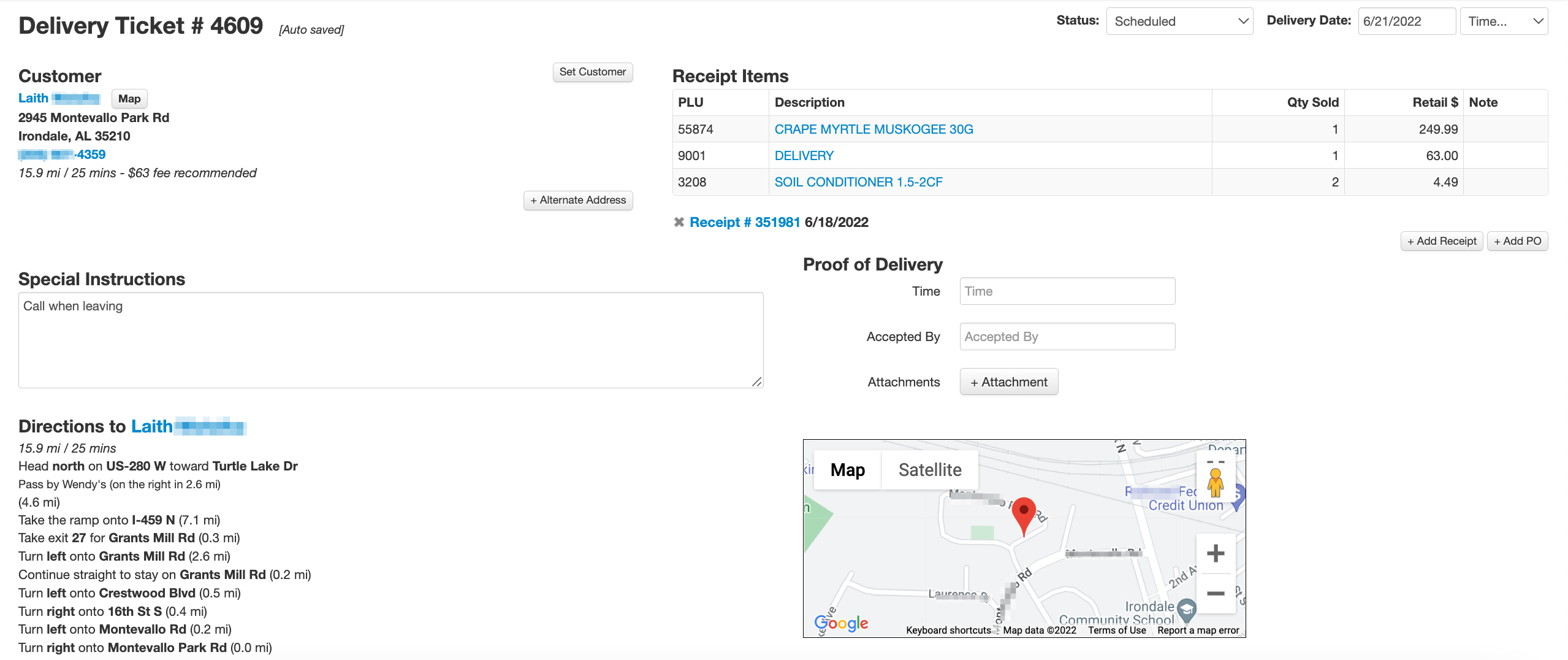 Directions- VMX POS will automatically look up driving directions on the internet, but you can add additional instructions to help the delivery driver arrive on time.
