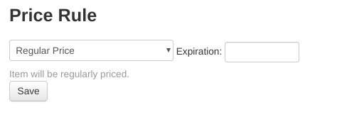 The first and most simple is the regular price setting, which is obviously the default setting for all items. The price will be listed normally on sales.