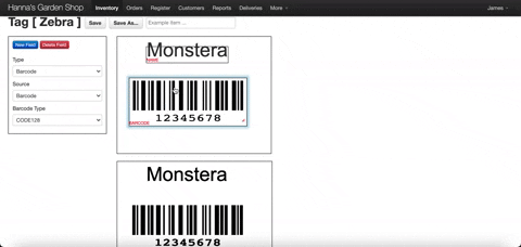 This page gives you options to insert fields onto the previewed tag layout in real time.
