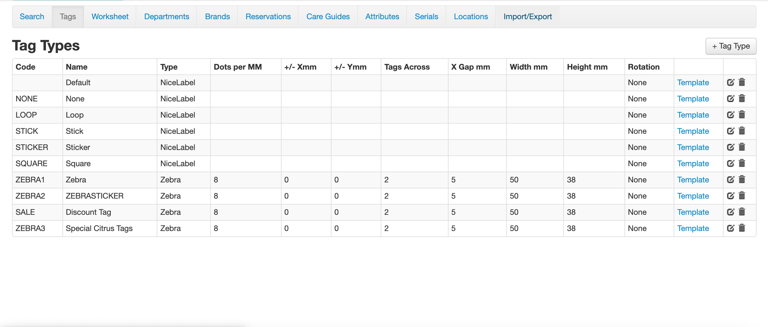 On this page you can access current tag templates as well as create new ones using the