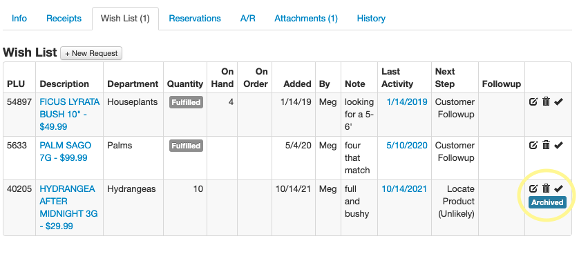 Added checkbox for archiving requests- these requests will only show in the customer wishlist