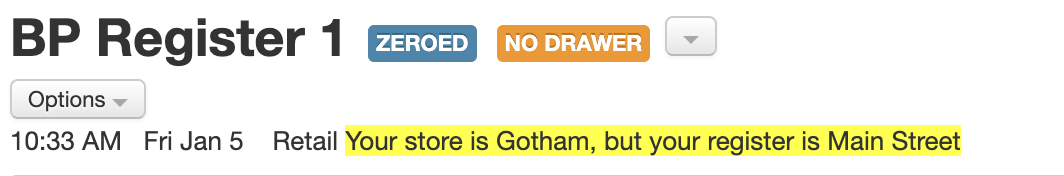 - You're now warned if your Register's store is different from your logged-in (top-right) store.