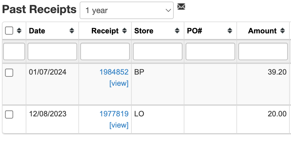 Receipts tab now includes Store column