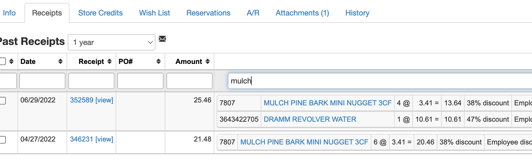 Use this tool to find receipts and set the customer on them, so you can validate their return or warranty!