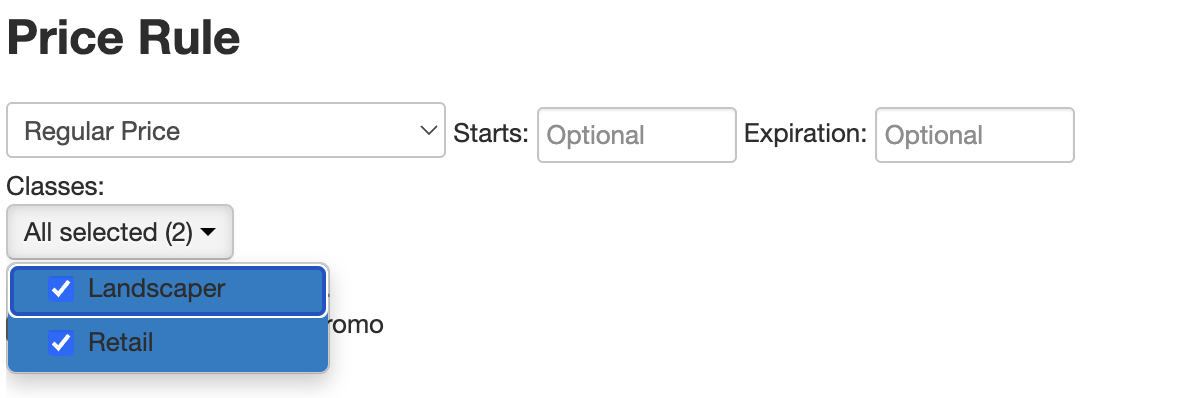 Price rule: Added support for excluding certain customer classes from item price rules: