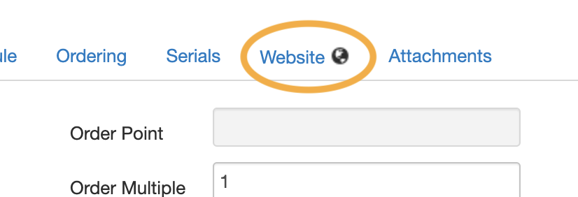 Website: The globe icon on the Website tab of the item page indicates that the item is visible online (for companies using VMX WEB):\