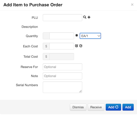 | Unit Cost | Enter the cost per item being added- this field may be pre-populated based on historical cost for that vendor & item |