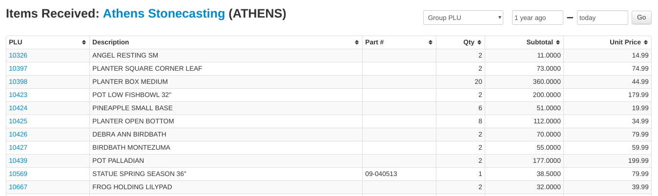| Group PLU | Either group the PLUs so that each item is only listed once or ungroup them and see each time a PLU was received separately |
