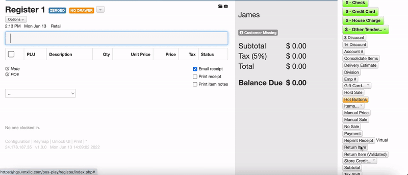 Before you can start making sales, you have to enter a drawer for the register you are using.