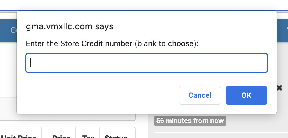 Then you will be prompted to enter the store credit number. You can locate this on the customers receipt or select "Okay" and find the correct store credit balance.