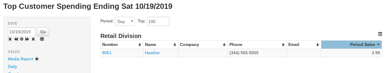 - Period Sales- The total sales dollars collected from this customer in the time period selected
