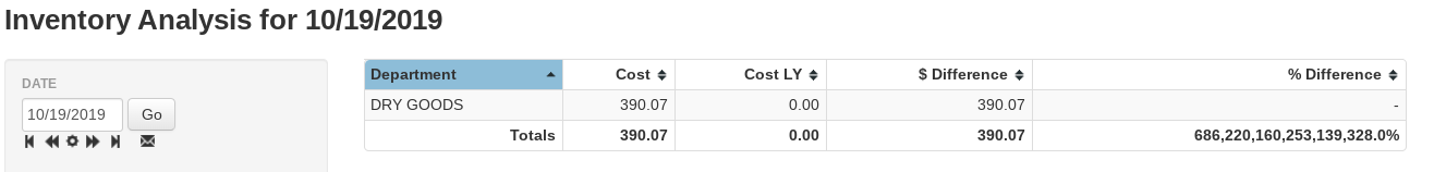 - Cost Last Year- The cost of inventory on hand on this day one year ago