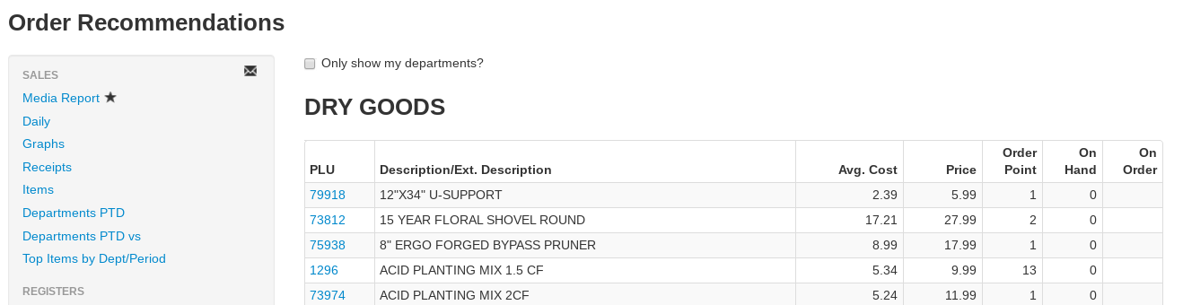 - PLU- The item number, hyperlinked to the item page