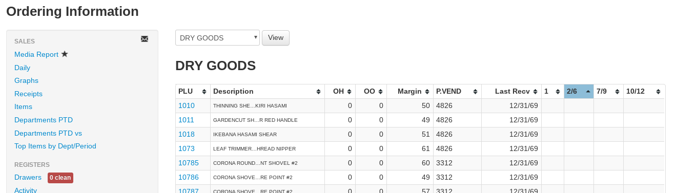 - PLU- The item number, hyperlinked to the item page