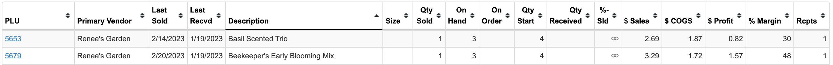 - PLU- the item number, hyperlinked to the item page